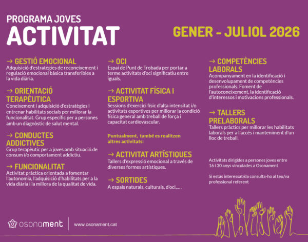 Aquest mes d’octubre, celebrem el Dia Mundial de la Salut Mental, amb activitats organitzades per la Taula de Salut Mental i Addiccions d’Osona i el Lluçanès, que posen de relleu la relació entre activitat física i benestar emocional. Aquest divendres al matí, més… Continue Reading →