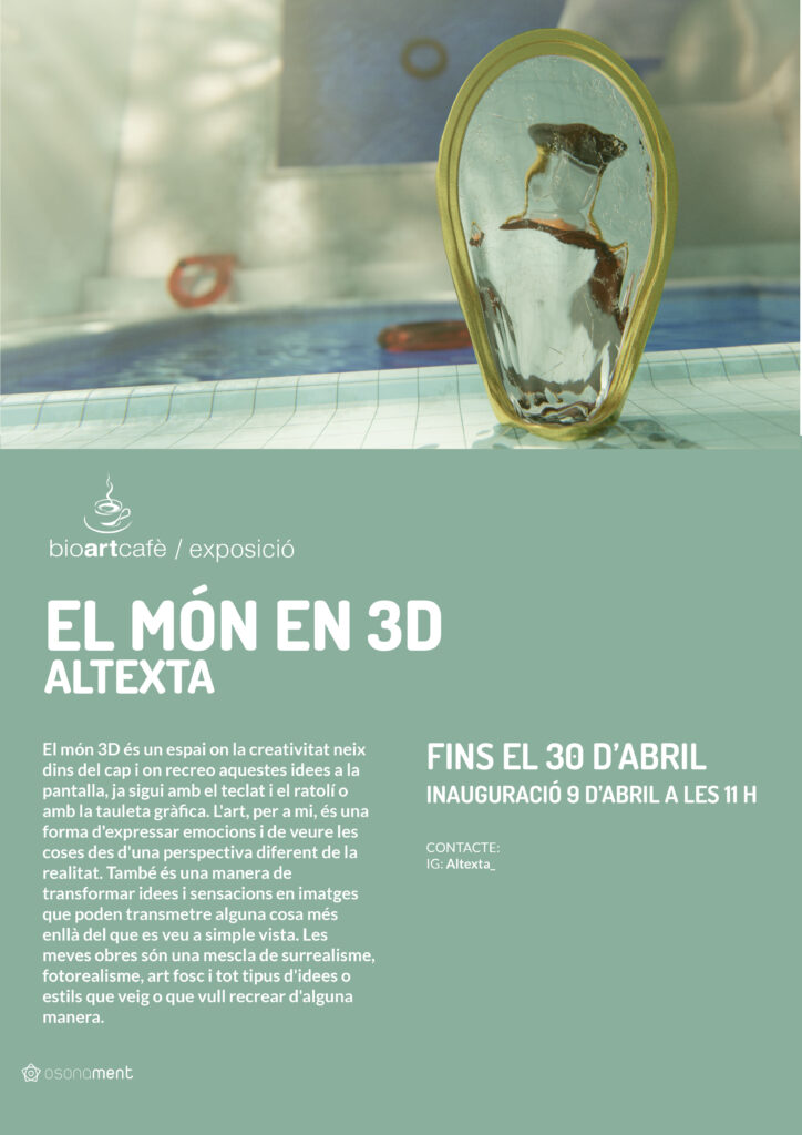 Altexta treballa amb creacions digitals en 3D, una pràctica que per a ell té també un valor terapèutic. “M’ajuda quan el cap em va a tope”, explica, posant de manifest com l’art esdevé una eina per regular les emocions i trobar espais de calma.