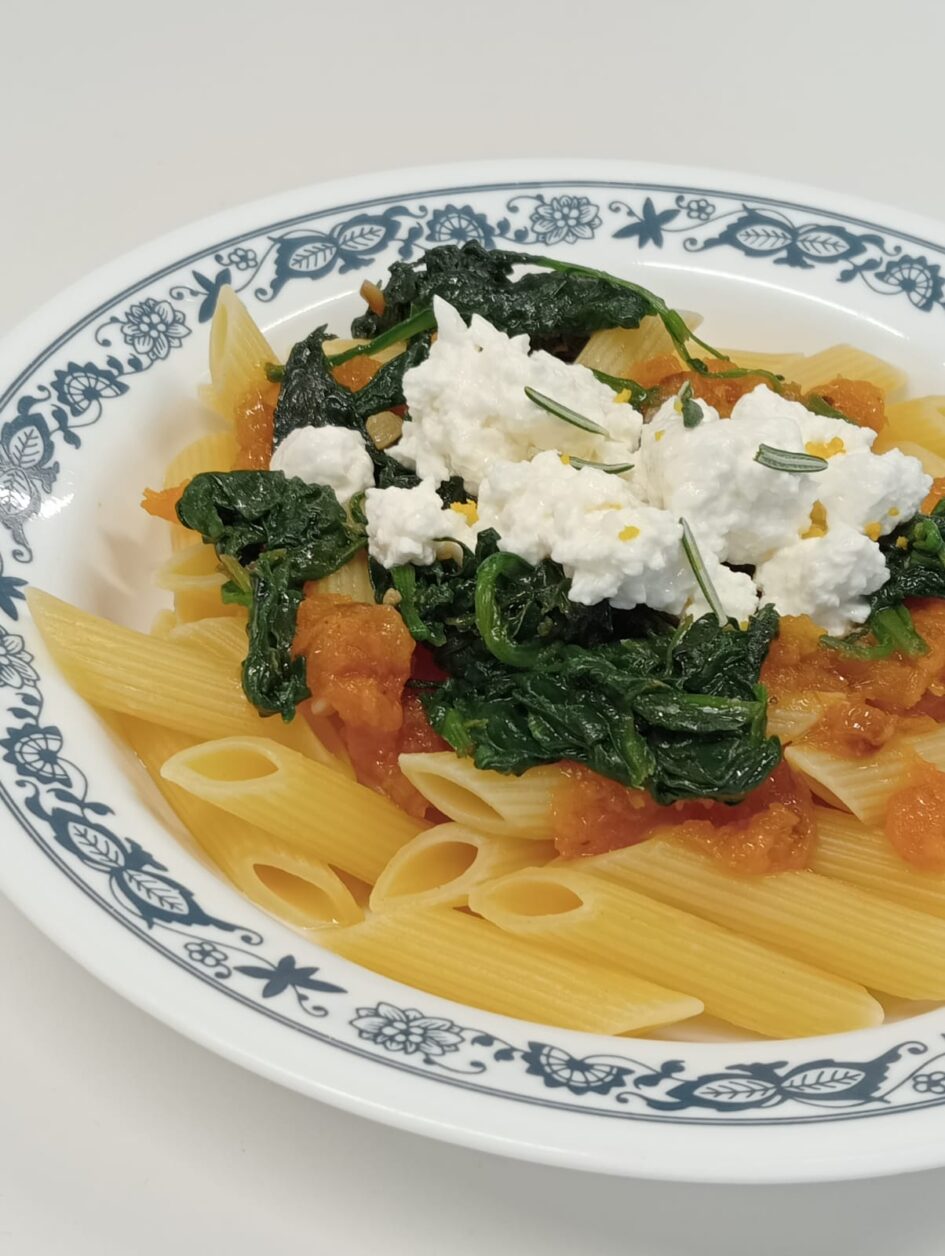 - Un cop cuits, barreja els espinacs amb la crema de carbassa.