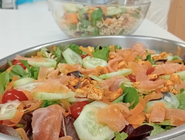 INGREDIENTS PER A 6 PERSONES Brots tendresPasta integral 300gTomàquets cirerolCogombre 1Pastanaga 1Salmó fumat 100gTofu natural 200gPer les salses d’acompanyament:Iogurt 1Suc de llimonaSalPebreCurriOuPebrot escalivat ELABORACIÓ Per la maionesa: en el vas de la batedora afegim un ou i el mateix volum… Continue Reading →