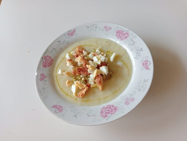 RECEPTA PER A 6 PERSONES Oli d’oliva 2 cullerades soperesPorros (únicament la part blanca) 6 unitatsPomes Golden 2 unitatsPatata 200g (1 unitat mitjana)AiguaSal i pebre negreBarreta de pa ELABORACIÓ La recepta original de la vichyssoise s’elabora amb mantega en lloc… Continue Reading →